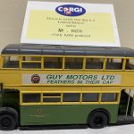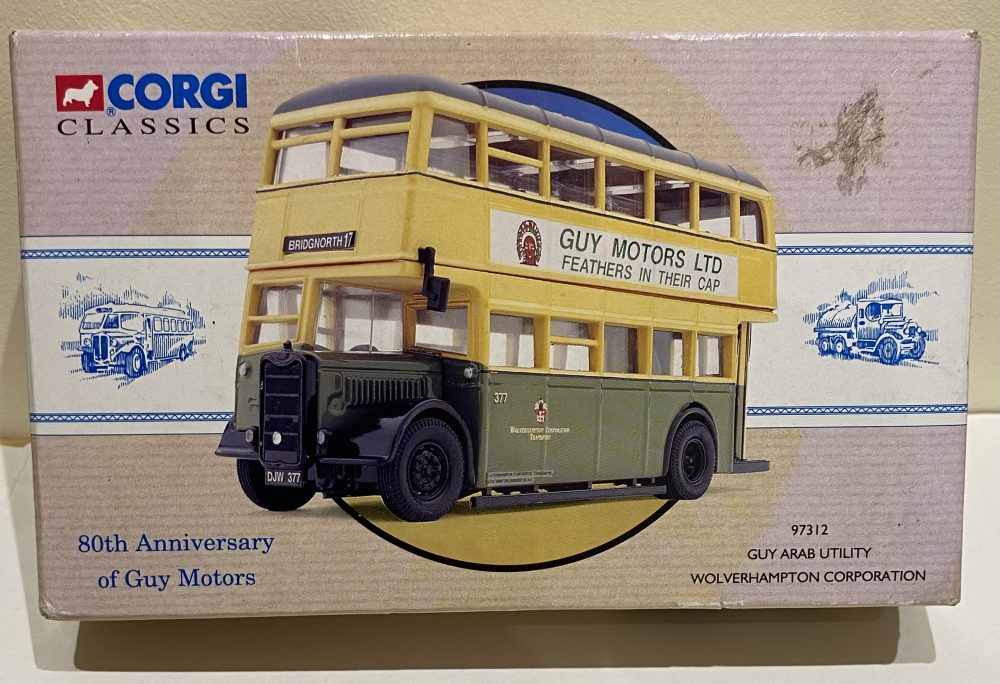 Corgi 97312 Guy Arab Utility in Wolverhampton Corporation livery. Released c1993. This model is a celebration of the 80th anniversary of Guy Motors. DUK277 is in lovely condition, with certificate and original box. Box has light scuffs from storage.