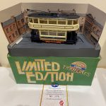 Tram is in good condition, on stand with card surround. Box has light damage.