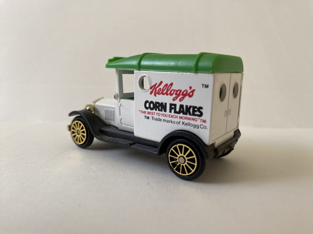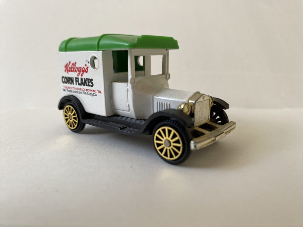 Corgi Model T Ford van in the livery with decals for Kelloggs corn flakes.