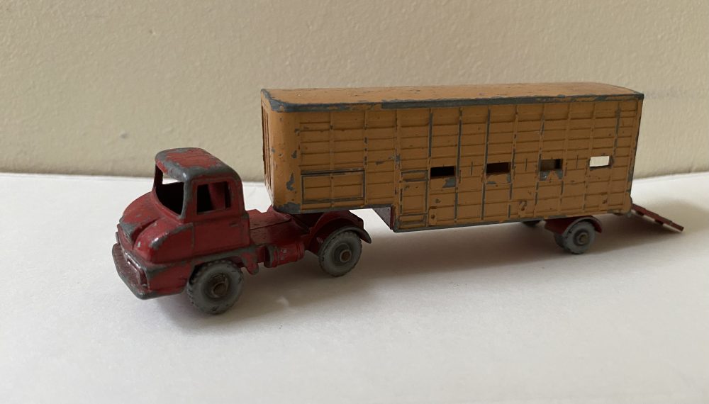 Lesney Thames Trader and Jennings cattle truck artic trailer combination. No 7 major pack c1960’s. Play worn condition with paint chips.