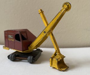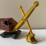 Lesney No 4 Ruston-Bucyrus excavator with Taylor Woodrow decals. Play worn condition with paint chips and the tracks which attach to the wheels are missing.