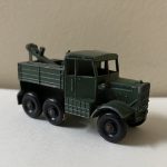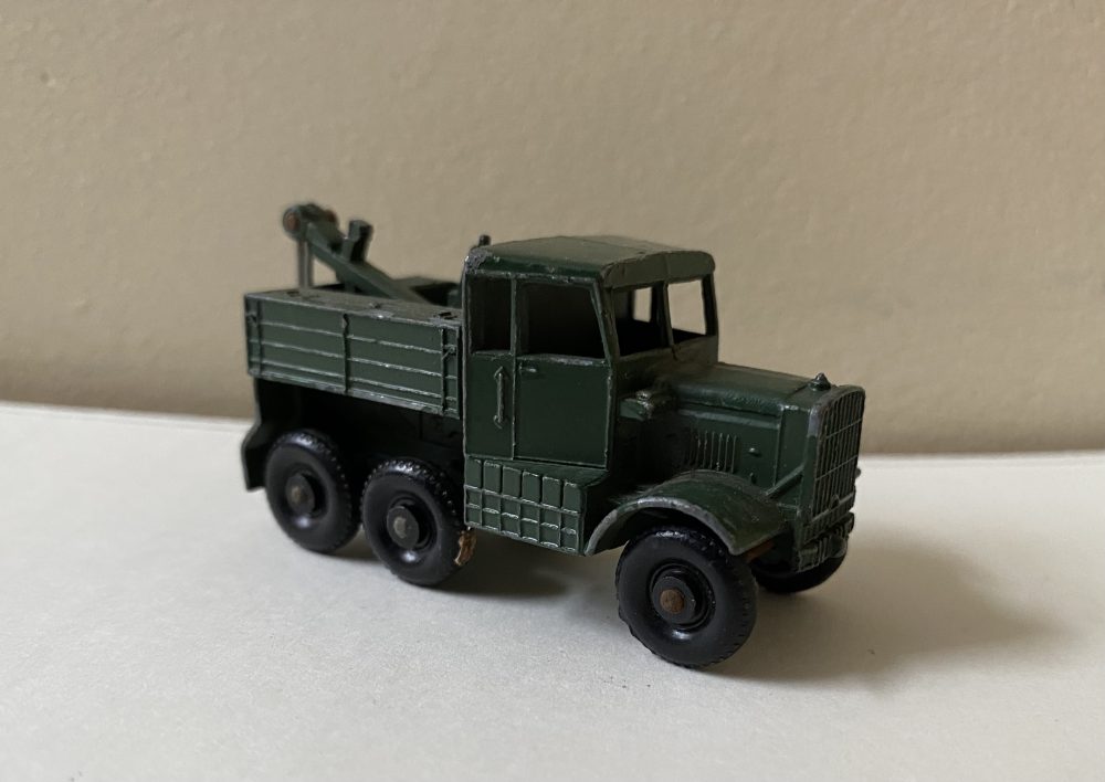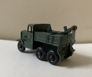 Lesney No 64 Scammel army breakdown truck. Black wheels, with tow hook. Play worn condition, light paint chips only.