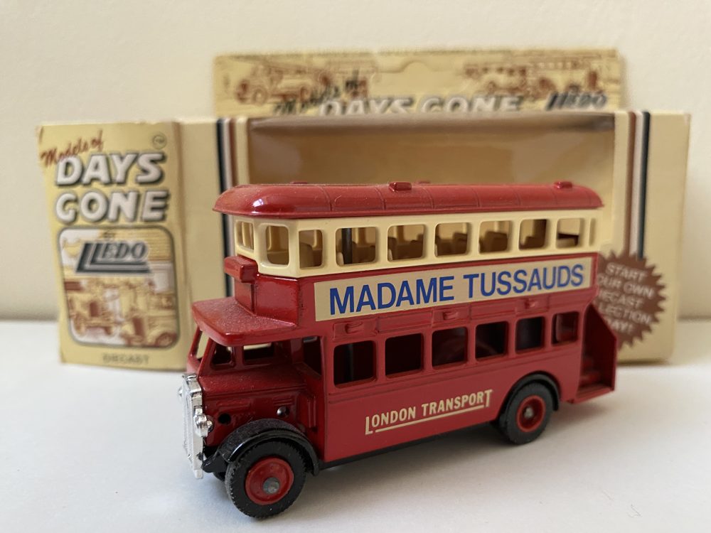 Lledo days gone London Transport open staircase bus with advertising for Madame Tussauds.