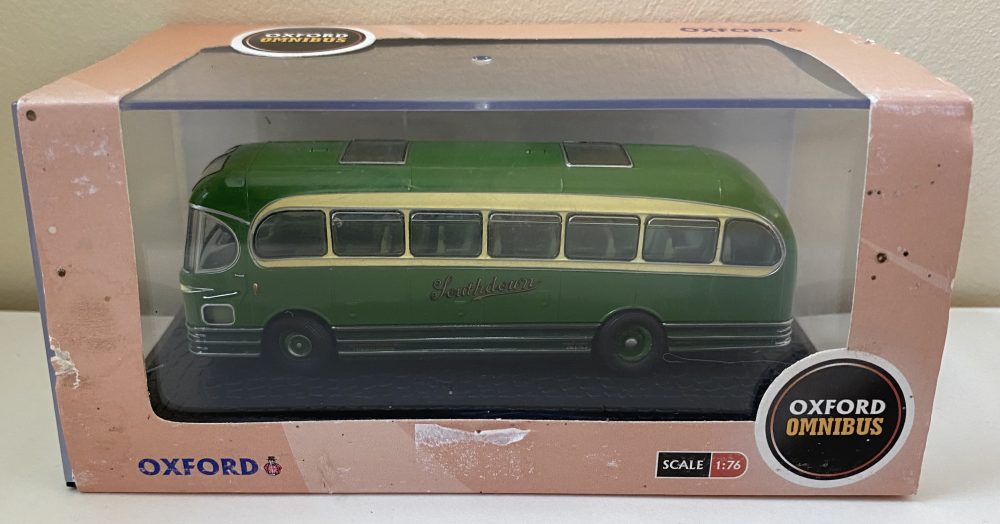 Oxford Diecast 76WFL001 Weymann bodied coach in Southdown livery. XUF141 shows destination Brighton.
